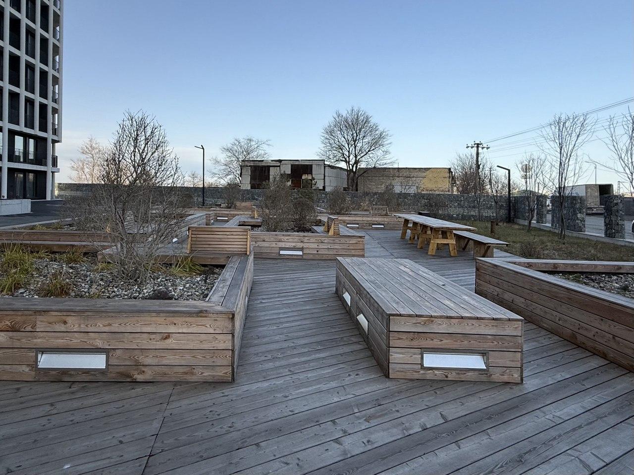 Эксплуатируемая крыша с патио и зонами отдыха.